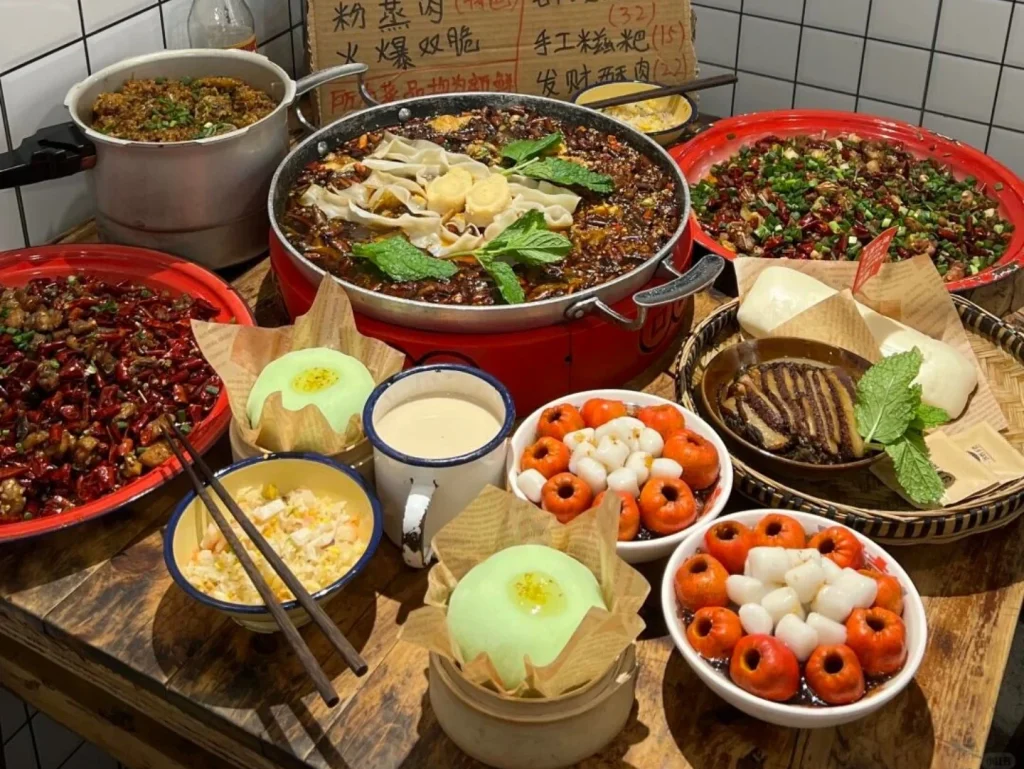 Try spicy hotpot, skewers, and street snacks in Chengdu and Chongqing. Experience “fly restaurants” — small local diners full of authentic charm.