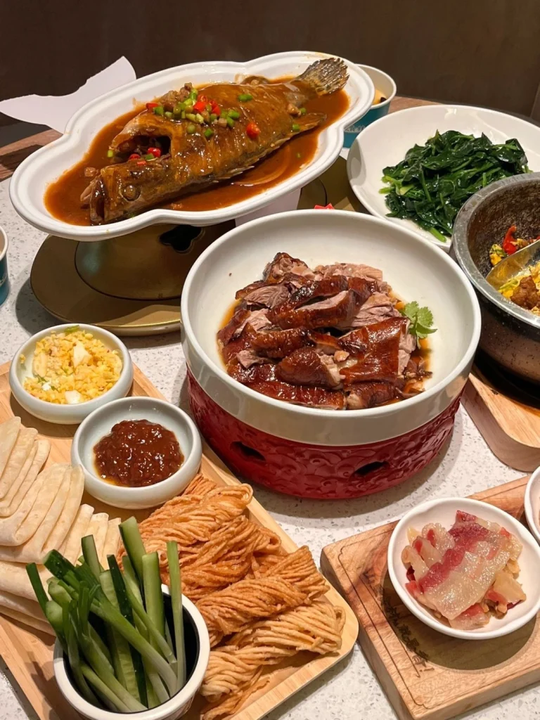 In Suzhou and Hangzhou, experience delicate dishes like Squirrel-shaped Mandarin Fish (松鼠鳜鱼) and Dragon Well Shrimp (龙井虾仁), paired with serene garden views.