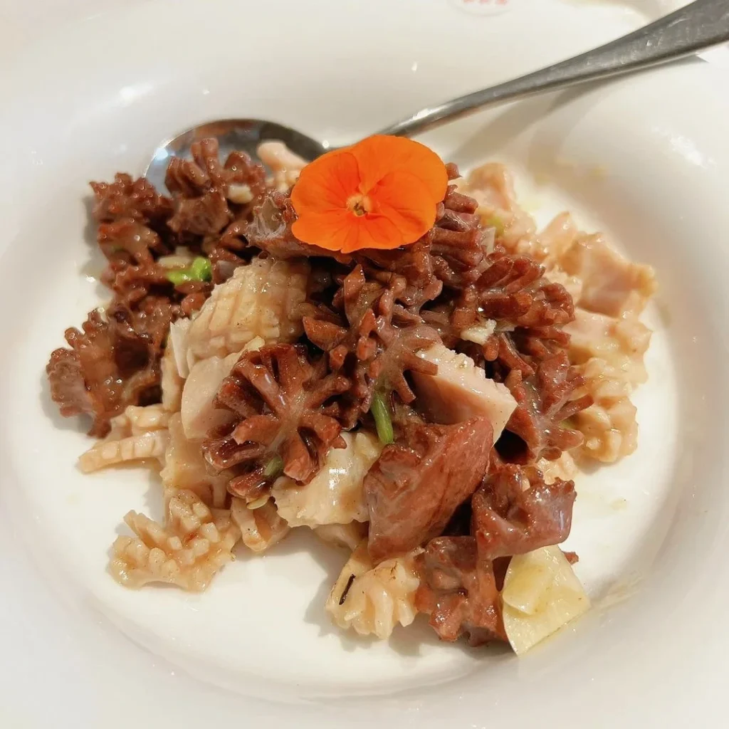 A savory stir-fried dish made with pork kidneys, known for its tender texture and robust flavors.