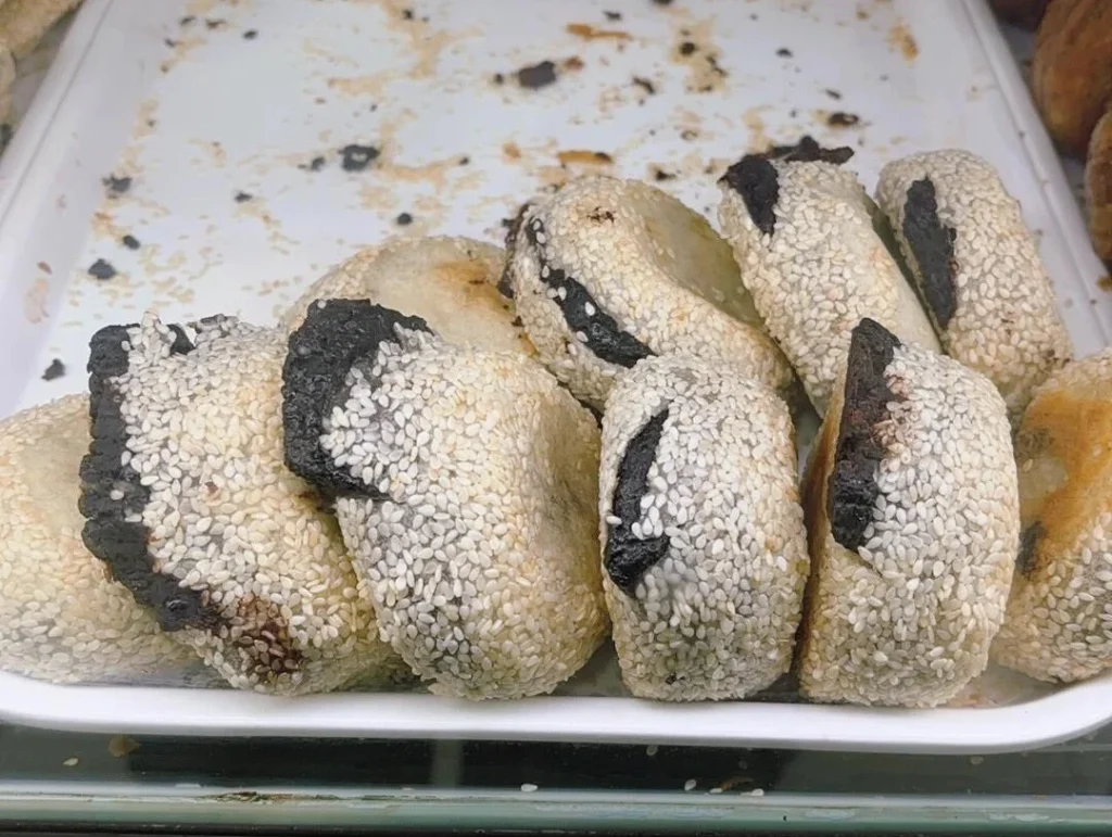 A sturdy flatbread swirled with sesame paste and brown sugar, baked until the crust crackles. Chewy, nutty, and deeply sweet—this is the go‑to gift from any hutong bakery.