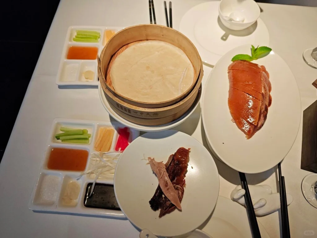 • Siji Minfu Roast Duck (Forbidden City): Crisp skin, tender  meat—and free duck‑bone soup—served with palace‑tower views.