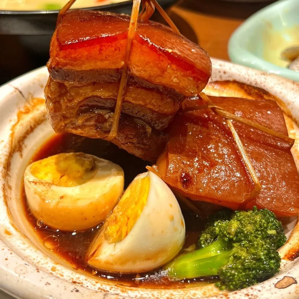 Braised pork belly, cooked until tender with rich soy and wine flavors.