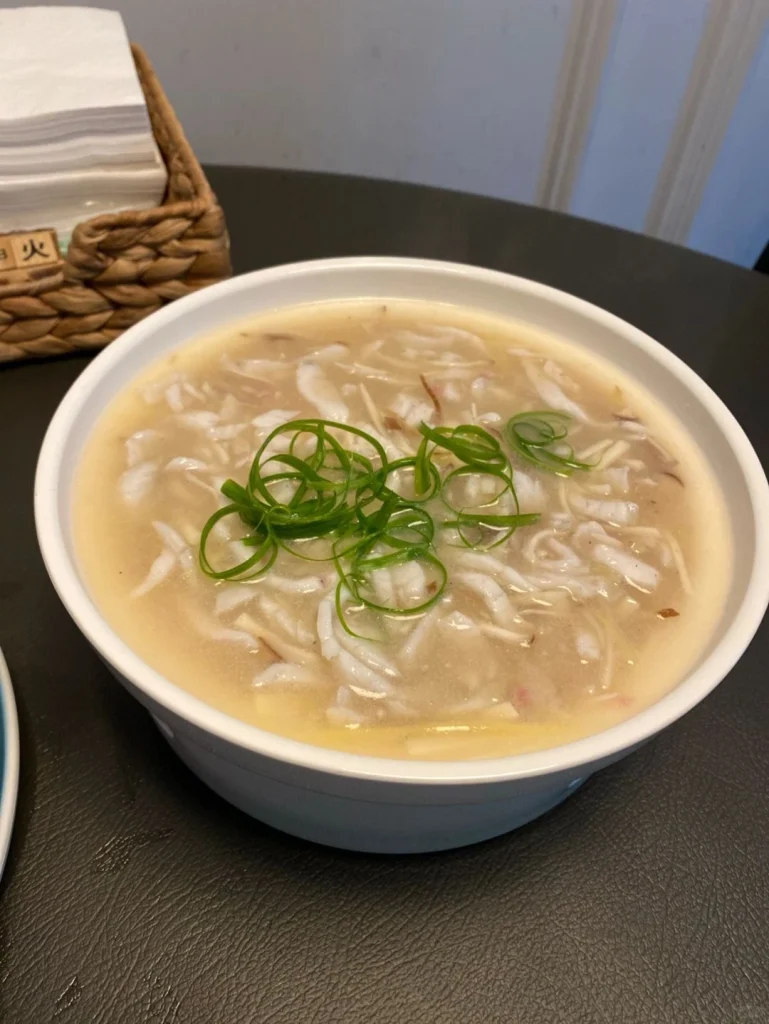 A silky soup made with fish, known for its delicate texture similar to crab meat.